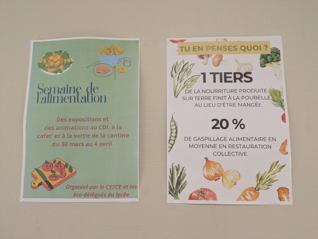 - Des expositions, des animations, des quizz (…) réalisés par les éco-délégués dans le hall devant le réfectoire.