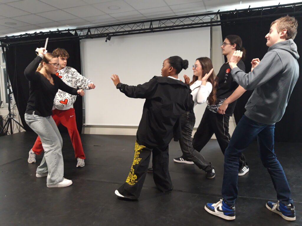 Nous nous retrouvons 3 heures par semaine, tous les mercredis après-midi de 13h à 16h dans la salle polyvalente du lycée. Aucune expérience théâtrale préalable n’est exigée, mais nous avons deux règles d’or : la bienveillance et la solidarité dans le groupe, ainsi que l’assiduité aux cours et aux spectacles.