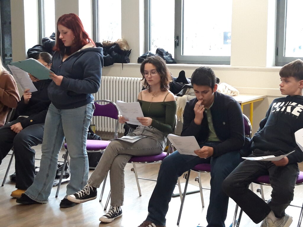 A partir du projet, lié à une thématique (Amour et désamour, Révolte et Engagement, Rencontres, la figure paternelle dans le théâtre contemporain, la comédie musicale …) ou à une pièce (66 Pulsations par minutes de Pauline Sales ; 7 minutes, comité d’usine de Stefano Massini ; Du Piment dans les yeux de Simon Grangeat ; Un Chapeau de paille d’Italie d’Eugène Labiche …), on représente les scènes travaillées dans la salle polyvalente de l’établissement, pour le premier projet en décembre, et pour le second au mois de mai.